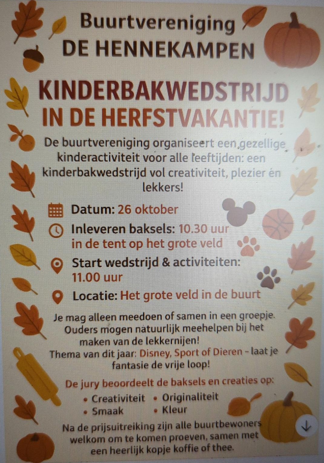 Twee kinderen uit onze buurt, Carmen en Eliza, hadden het leuke idee om in de herfstvakantie te gaan bakken. En dan met meerdere groepjes een heuse wedstrijd te maken, wie heeft het mooiste, creatiefste, en vooral lekkerste gebakken? Aanmelden kan via de aanmeldpagina. Zie rechtsmidden op onze hoofdpagina van de onze website. Het proeven van […]